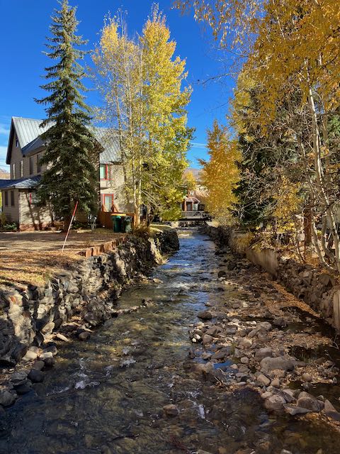 This past year, 2023, was a time of robust snowfall, snow pack, and summer rain. As a result the Fall colors were bright and varied. While the Colorado Rockies do not exhibit the range of color of the Northeastern U.S. and Canada, the juxtaposition of yellow, orange, white aspen bark, pink and grey granite, tan schist, and perpetual evergreen against the blue sky and white clouds at high altitude are striking. We centered our pilgrimage on the historic town of Crested Butte in the central region of the state. It had been many years since our last visit due to having moved to the East Coast for my work and to spend time nearer to my family.