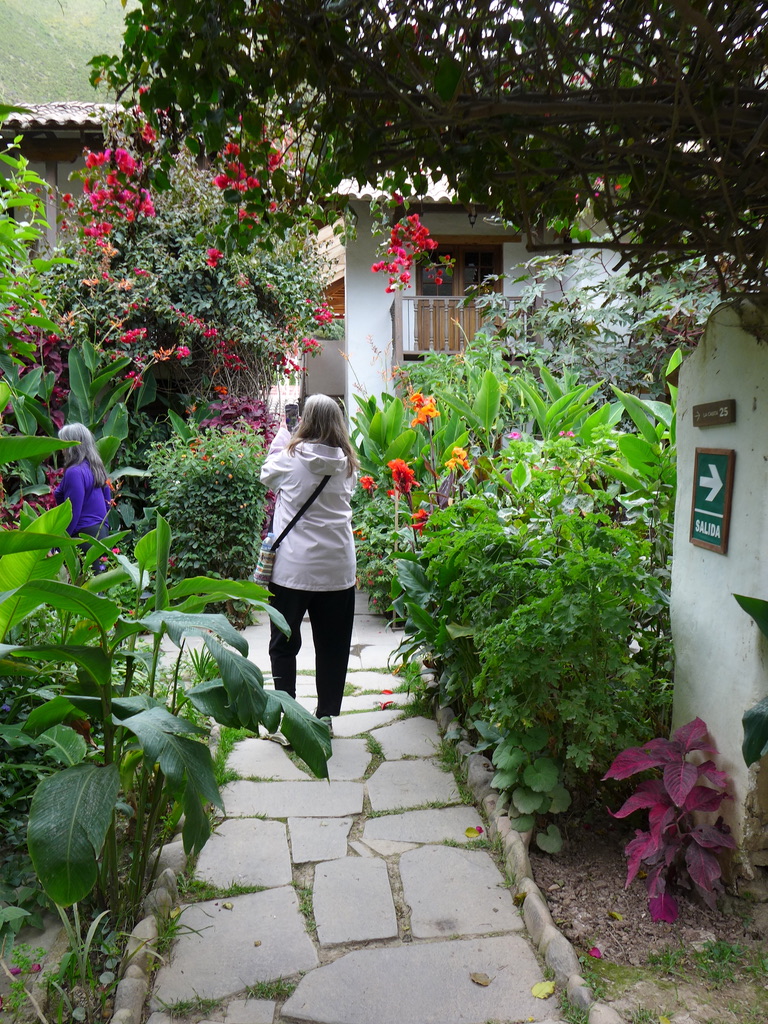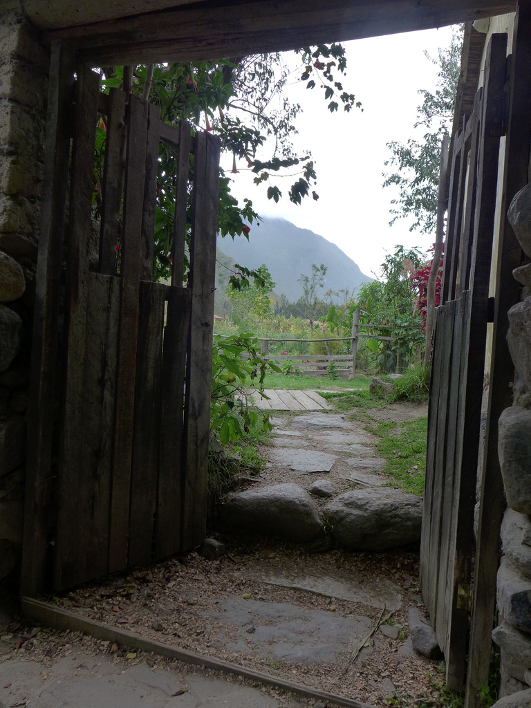 El Albergue, the hostel or inn, occupies a significant stretch of Ollantaytambo between the old town and the railroad station. It is a complex of orchards, organic farm fields, an indoor/outdoor restaurant, lodging, and a café interconnected by walkways covered and vividly colored by a vast array of native trees, shrubs, and flowers.