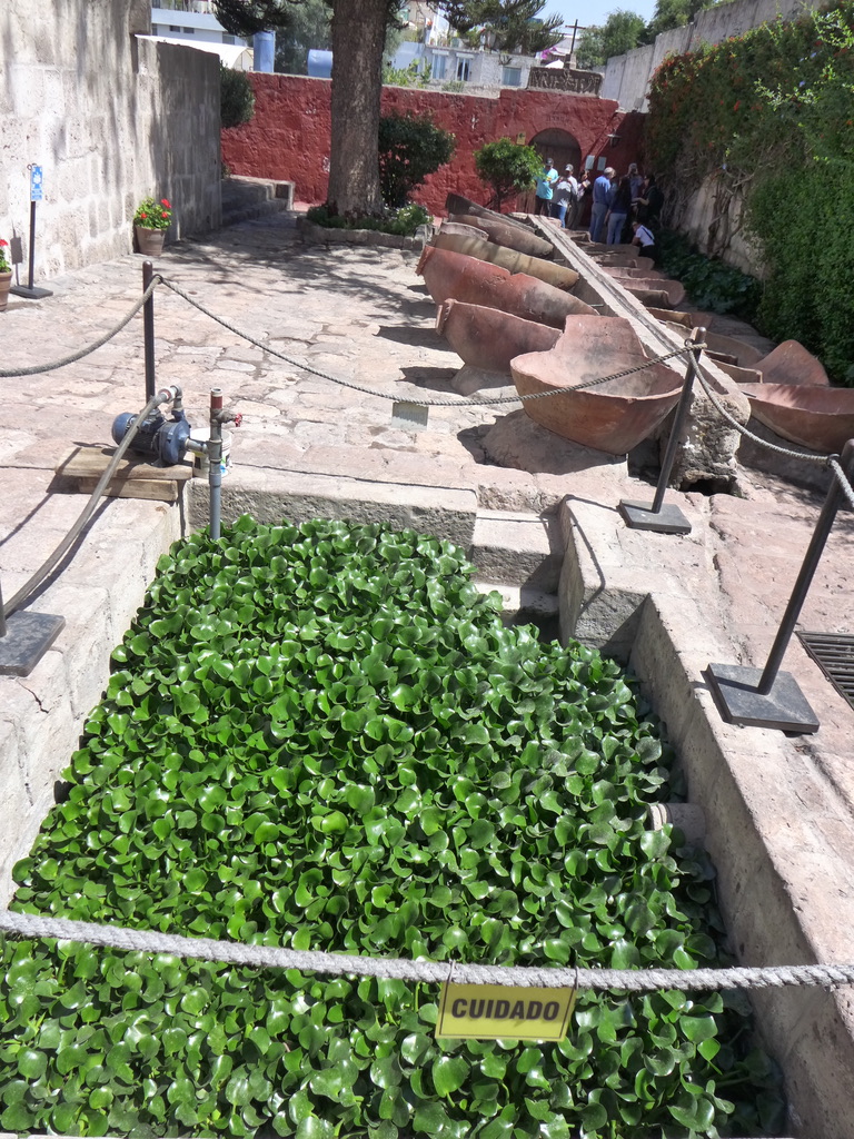 Laundry vessels and an overgrown cistern—”Cuidado,” caution!