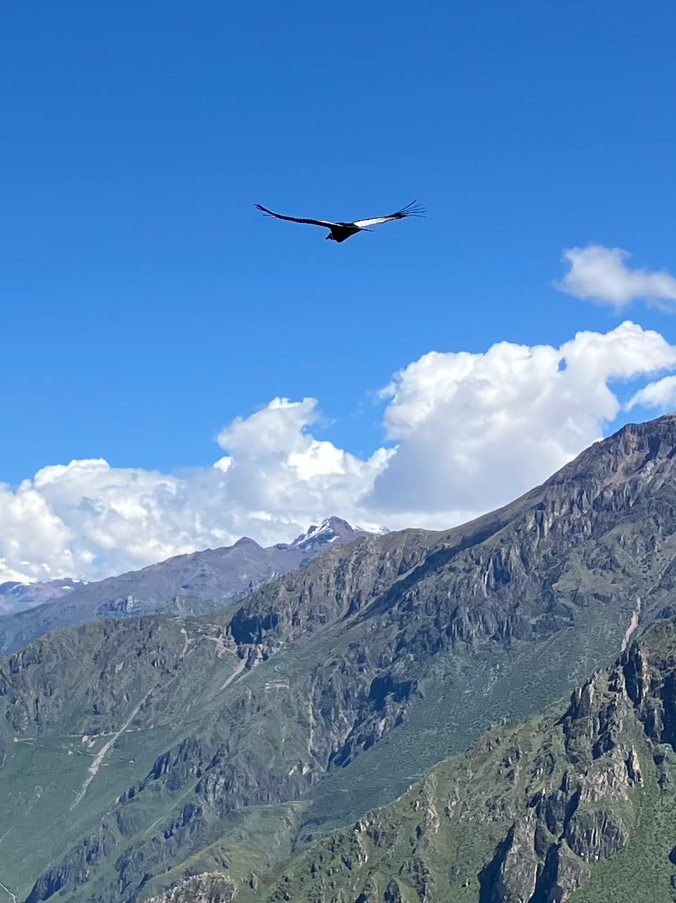 We left the valley, driving up the west side of the canyon en route to the roadside overlooks providing views of Andean Condors. They ride the [relatively] warm updrafts rising up the mountain sides flanking the canyon.