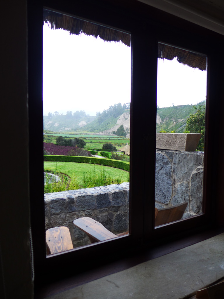 View from our room—the clusters of purplish shrubs are quinoa.