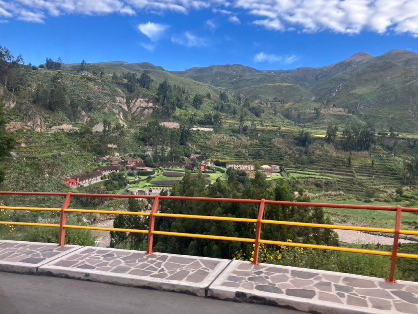 Driving on from the entrance to the canyon at Chimay, we stopped at Mamayacchi’s for lunch as I described in the last post, then headed onto the village of Yanque and the Colca Lodge, Spa, and Hot Springs on the banks of Rio Colca.