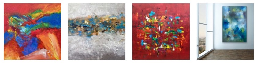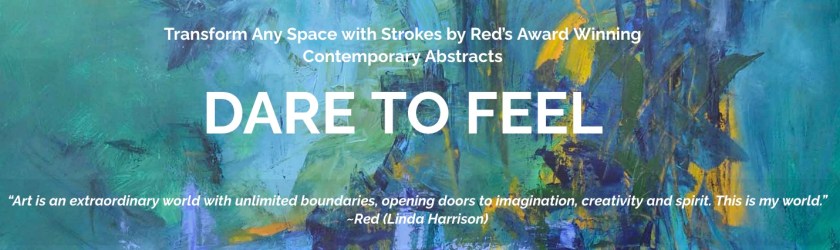 Fast forward to several years ago, Linda began dedicating more and more time and effort to painting. She has long been a fan of modern design and modern art. Her house was decorated and furnished with modern design fixtures, furnishings, and artwork. So, it was no suprise that, although she can draw and paint in traditional formats, her interest is in vivid, colorful Abstract Impressionism painting—think Jackson Pollock, Mark Rothko, Norman Lewis, Willem de Kooning, and other prominent artists who played a role in that movement of the late 1940s, 50s, and 60s. Since then the medium and materials have improved and the colors are more vivid than ever. Red, as Linda refers to her artist self, has developed an up-to-date, technically sophisticated interpretation of reality through Abstract Impressionism technique and style using modern tools, techniques, and materials.